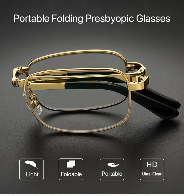 Folding metal frame, resin lenses, can fit in your pocket, ten years old brand glasses, every part of the process is professionally built, so you can wear more comfortable and cheaper today!